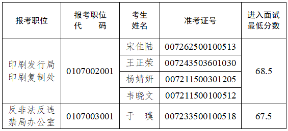 根据公务员公开遴选工作有关规定,因部分考生放弃面试资格,按照笔试成绩由高到低的顺序,递补以下考生为面试人选(同一职位考生按准考证号降序排列):